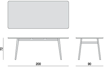 Dining table in solid canaletta walnut. L 200, W 90, H 72 cm.